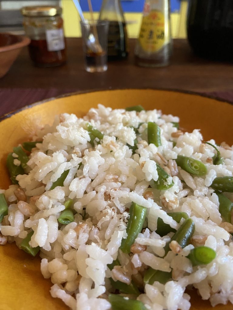 こちらは カルナローリというリゾット向けのお米を使い 旬のインゲンとバター&粉チーズで風味づけ。