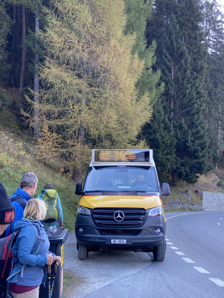 途中までは一般ポストバス、そこから先は特別運行の小さなポストバスで向かいます。